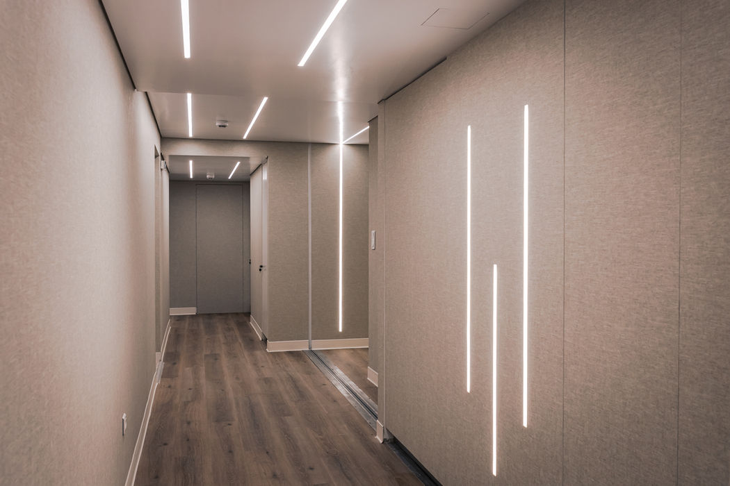 Συγκεκριμένα, χρησιμοποιήθηκε αντιμικροβιακό υλικό επένδυσης PALCLAD™ Pro το οποίο είναι ένα σύστημα επένδυσης που αποτελείται από συμπαγή πάνελ PVC που προσφέρει πλήρη δυνατότητα επικάλυψης επιφανειών, δημιουργεί ένα αντιμικροβιακό περιβάλλον, είναι ανθεκτικό, με πληθώρα επιλογής χρωμάτων, ανθεκτικό στους κραδασμούς, στη φωτιά, με ηλεκτρική και θερμική μόνωση.