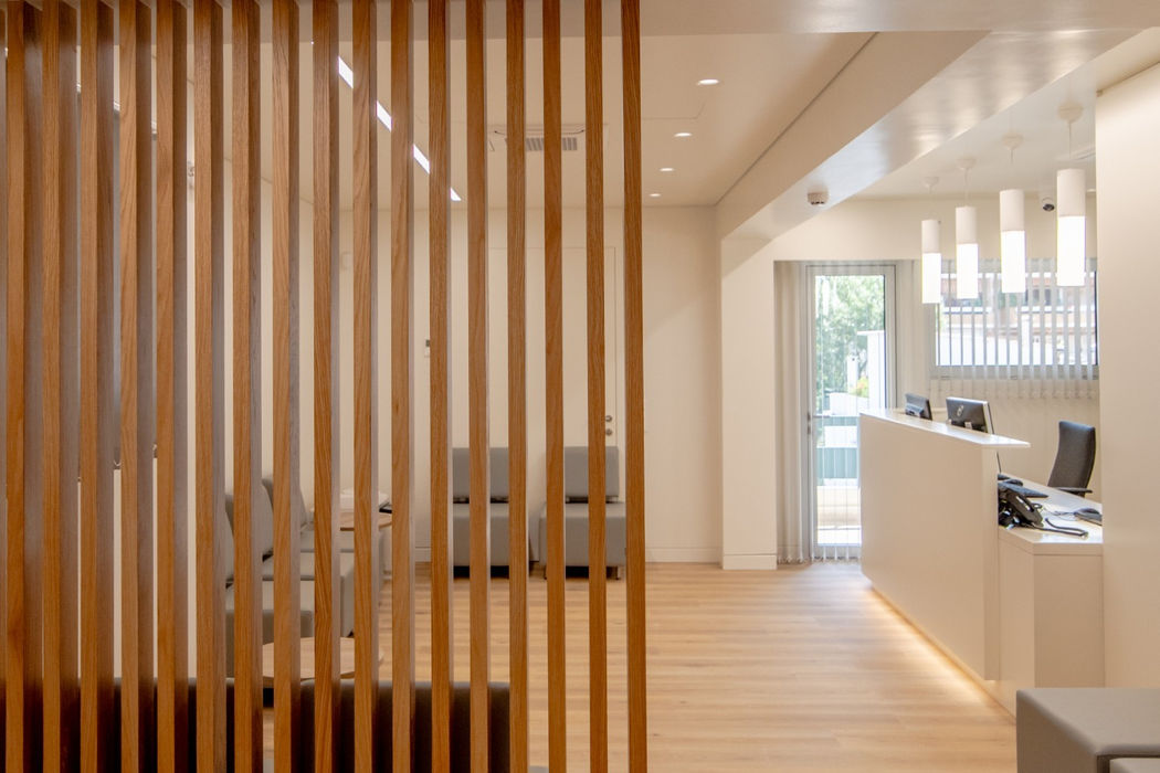 Η εταιρεία μας ανέλαβε την κατασκεύη γραφείων ιατρών στο Metropolitan General. Η αρχιτεκτονική διαρρύθμιση με γνώμονα τις ξύλινες απόχρωσεις σε τοιχοποιίες και ερμάρια έδωσε μία μοντέρνα νότα στους γραφειακούς χώρους σε συνδυασμό με τον σύγχρονο φωτισμό ευθύγραμμων και ορθογωνίων φωτιστικών οροφής.